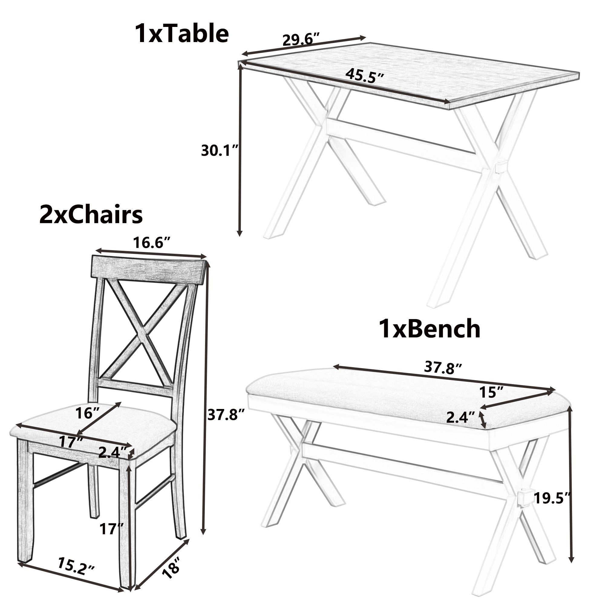 Home > 4 Pieces Farmhouse Rustic Wood Kitchen Dining Table Set with Upholstered 2 X-back Chairs and Bench,Gray Green+White+Beige