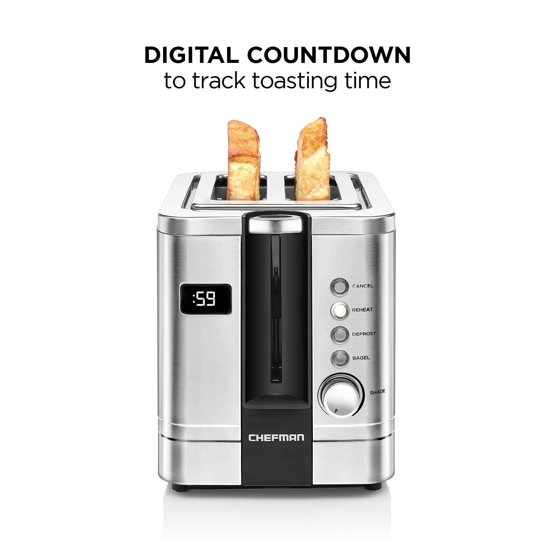 Chefman 2-Slice Digital Pop-Up Toaster, Stainless Steel, Bagel Sized Slots, Removable Crumb Tray