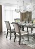 Shine up your silverware, bring out the glassware and get ready for the dinner party of the century with this glorious, traditional style dining chair. With its upholstered chairs featuring gray leatherette, rope-like trim and elegant carved legs, this chair is sure to make any dining area one of a kind.