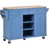 Kitchen cart with Rubber wood desktop rolling mobile kitchen island with storage and 5 draws 53 Inch length (Blue)