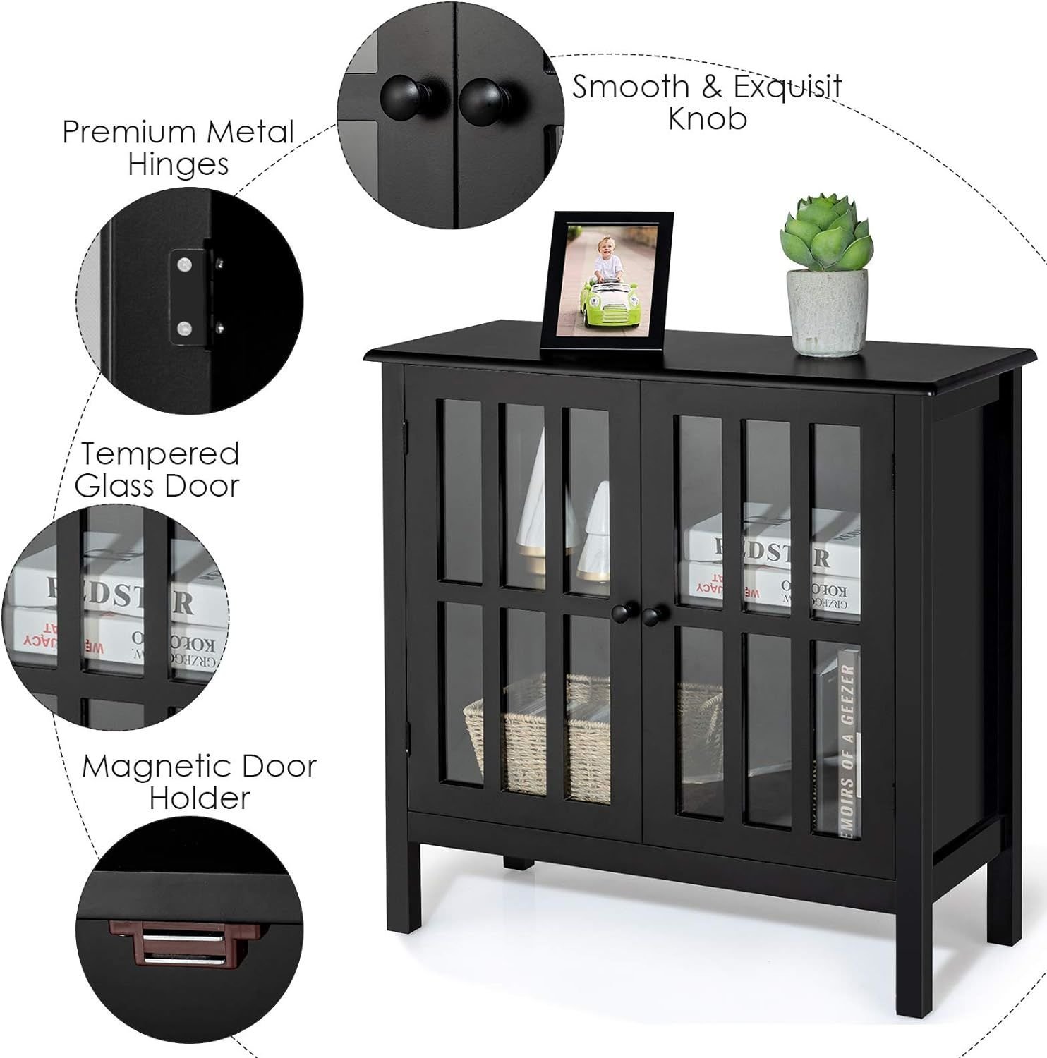 [Multiple Values & Premium Performance]With 2-tier shelf and 2 tempered glass doors design, you can surprisingly place your any items in or on it as you like. Transparent glass-paneled doors makes it easy for you to identify your goods With handle for easy opening and closing.