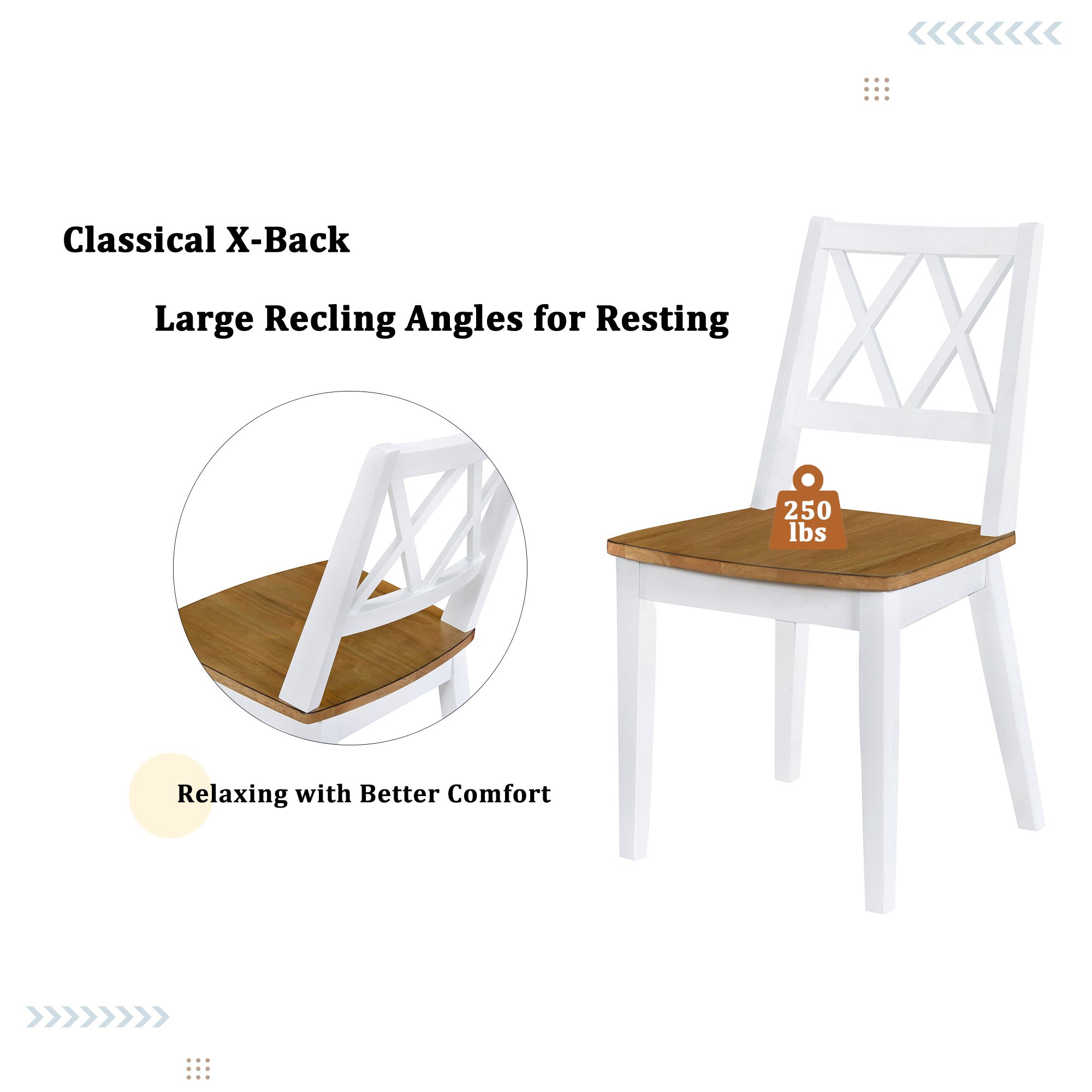 Mid-Century 5-Piece Round Dining Table Set with Trestle Legs and 4 Cross Back Dining Chairs