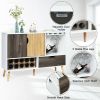 1.Wine Rack and Wine Glass Holder: The cupboard is designed with built-in wine racks to store 10 standard-size wine bottles for great protection. Besides, the right open compartment with wine glass holder provides ample space to hang wine glasses and display some kitchen supplies for easy access.