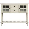 Sideboard Console Table with Bottom Shelf, Farmhouse Wood/Glass Buffet Storage Cabinet Living Room