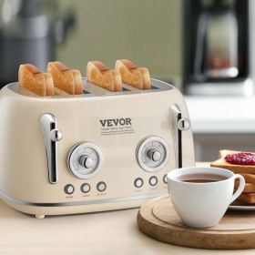 SKYSHALO 4 Slice Stainless Steel Toaster Cancel Defrost Bagel with Removable Crumb