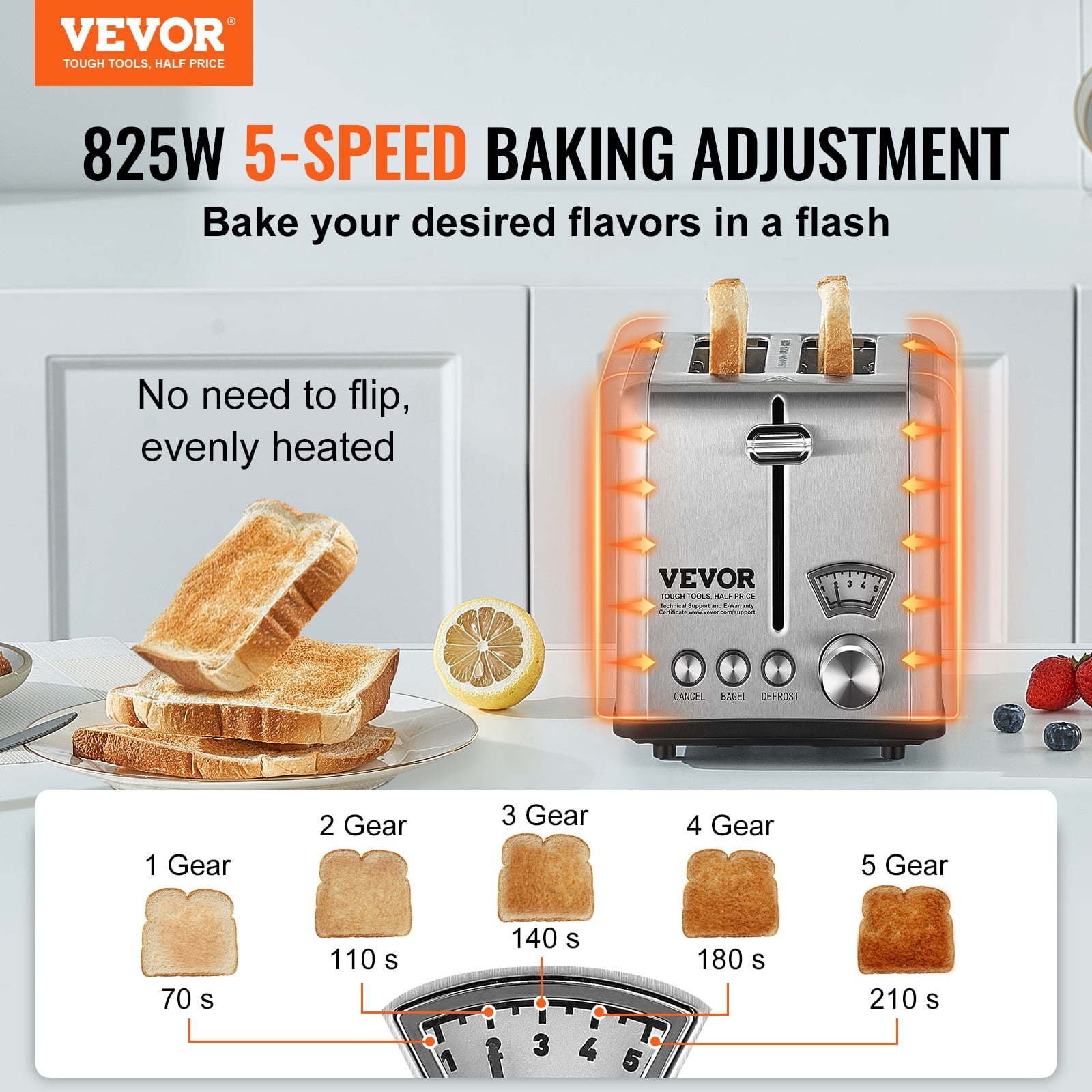 Powerful 2 Slice Toaster: Introducing our 825W 2 slice toaster, you can achieve your desired toasting level in just 4 minutes on any of the 6 browning levels. The internal dual-directional surround heating technology makes your bread evenly toast without the need to flip it. Personalize your toast from light golden to deep brown, and experience perfection!